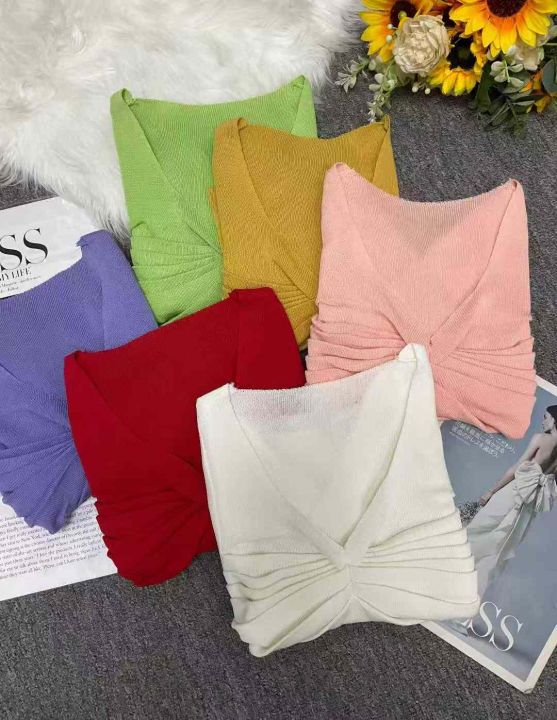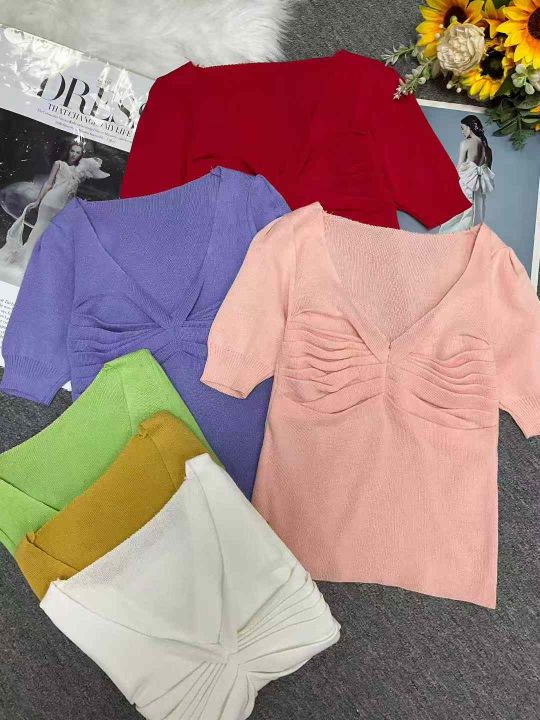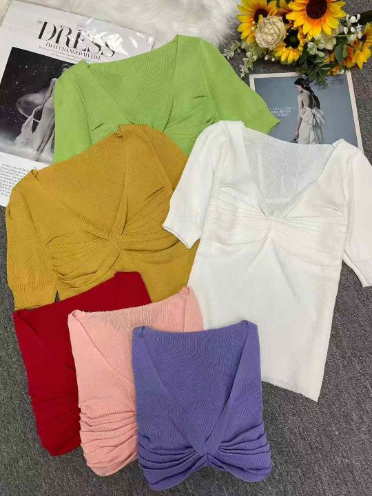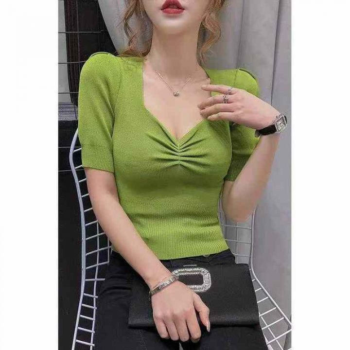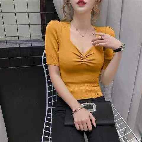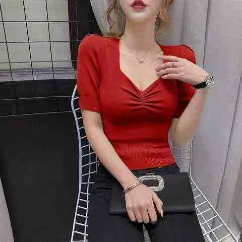 夏季新款弹力修身显瘦V领褶皱冰丝针织短袖T桖,独立包装,单款多色,均码面料柔软舒适弹力大,200件,全清5.9元超低价秒杀!