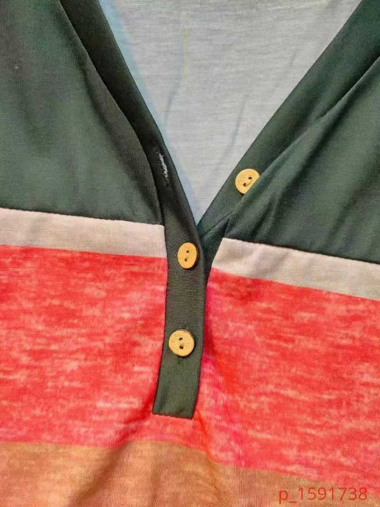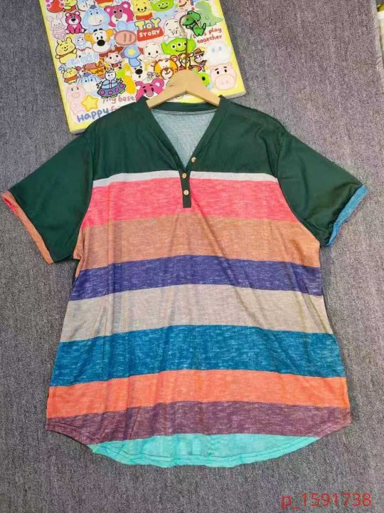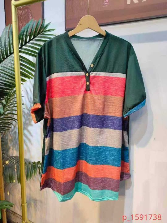 1740件跨境电商大码女装夏季系扣条纹套头T恤上衣 XL-5XL码 独立包装。 _@_@