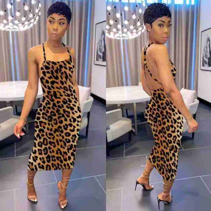 时尚三色印花性感吊带露背斑纹迷彩连衣裙,整款多色,数量300条左右,码数S-2XL,高弹力,品质好,有独立包装。
