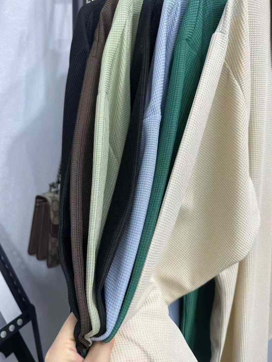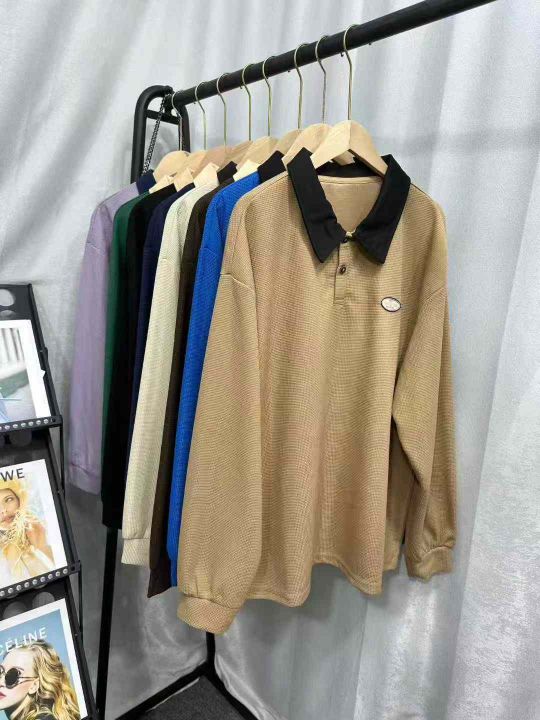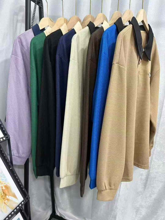 3260件工厂新货长袖男女同款华夫格polo衫,2个整款多个颜色,领口包边,独立包装,码数S一5XL,全清5.8分货加1
