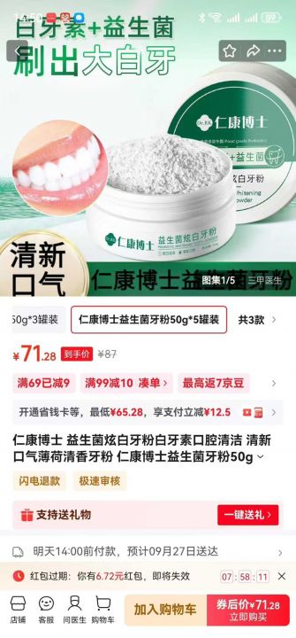 新到~仁康博士 益生菌炫白牙粉白牙素口腔清洁 清新口气薄荷清香牙粉 仁康博士益生菌牙粉50g*