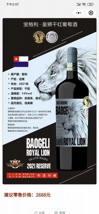 宝格丽皇狮红酒,因有总代理商:东北三省不去,22年,...