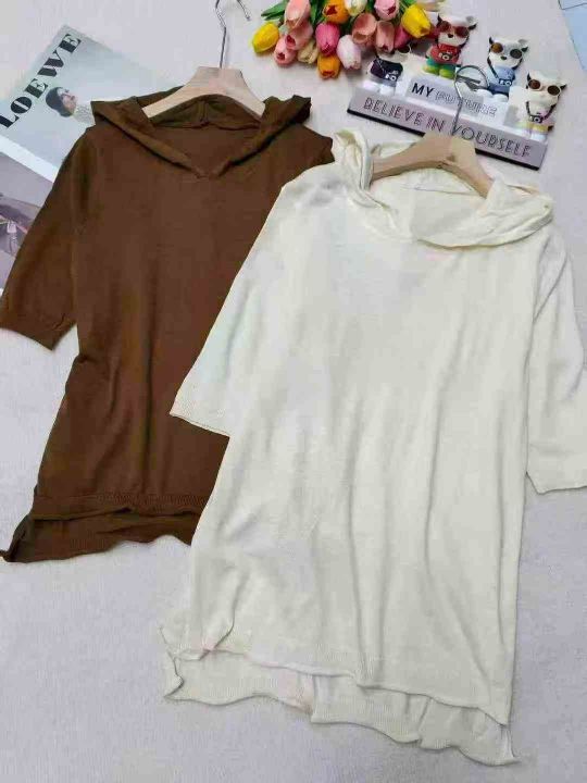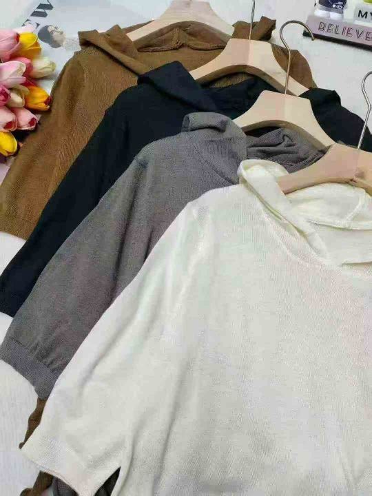 新款连帽冰丝短袖针织衫宽松打底衫,400多件,独立包装,全清5.9元一件!