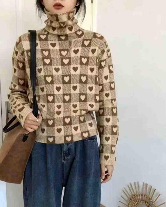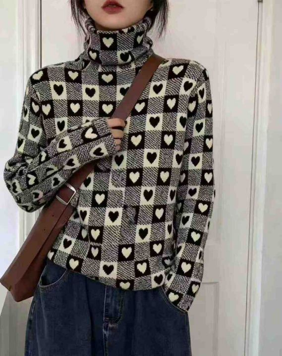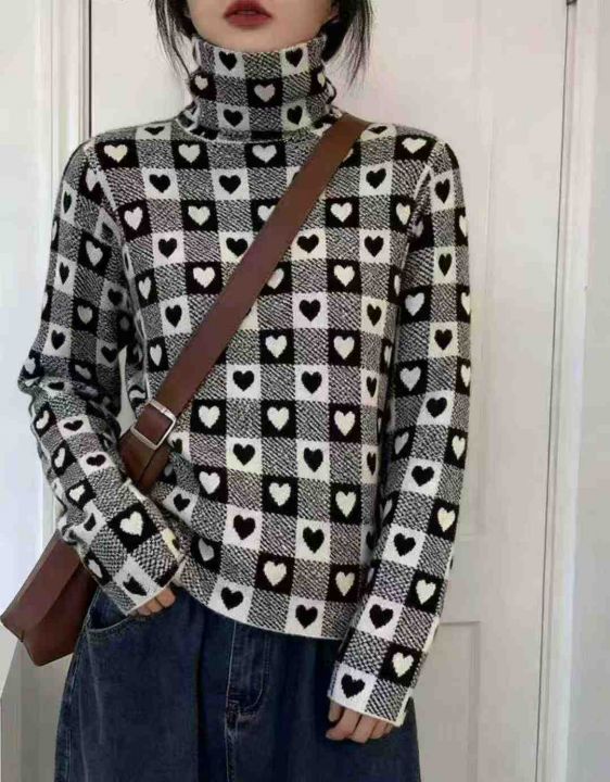 秋装新款韩版洋气设计感爱心高领打底包芯纱套头毛衣,...