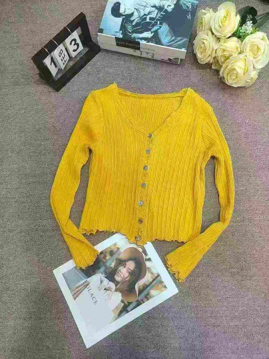 2025新款韩版百搭木耳边短款长袖针织薄款上衣外套,独立包装,五个颜色,8...
