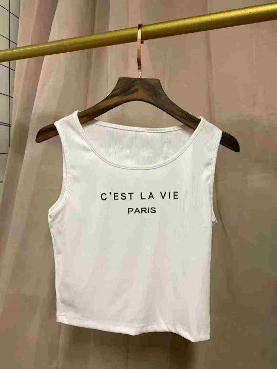 4.8清340件靓妹辣妹无袖字母印花白色吊带打底背心女遮副乳小个子修身百搭短款上衣 码数S-XL 独立包装