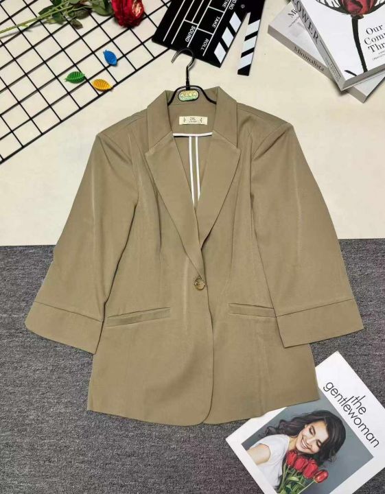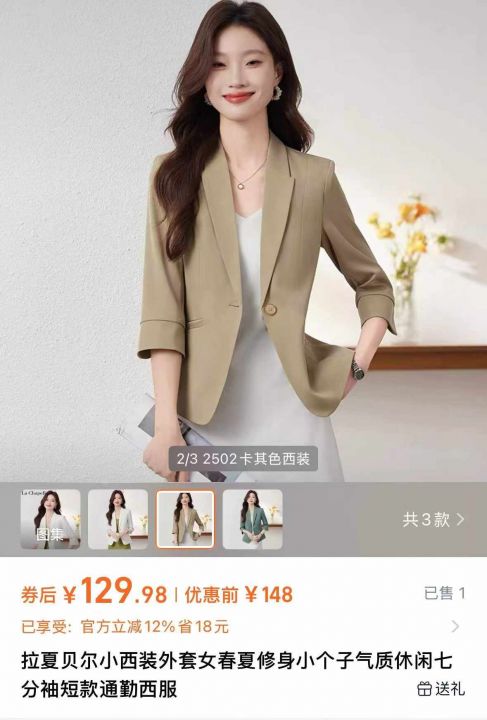 天猫精选290件 天猫在售款 时尚洋气修身气质休闲七分袖西装外套,整款三色,内衬都有包边,做工精细,有肩垫,高品质可入实体店 精美独立包装 S~4XL码 全清15.8无[烟花][烟花][烟花]