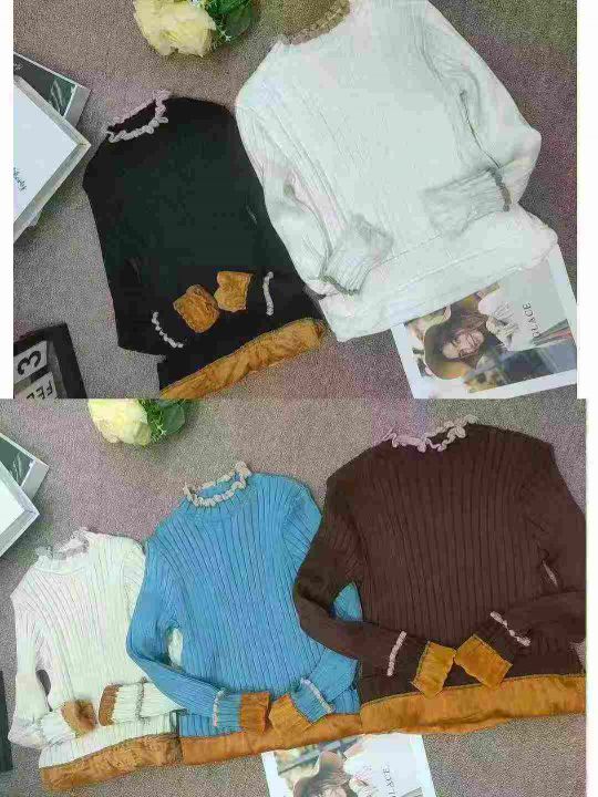 加绒加厚秋冬新款木耳边半高领内搭毛衣女套头修身显瘦针织,独立包装,五个颜色,1600件,7.8,分➕1