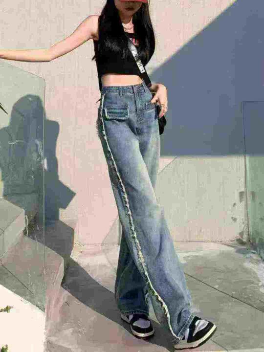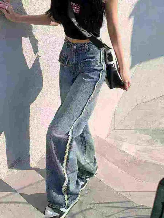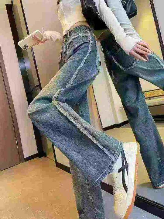 设计感毛边牛仔裤女春秋新款,高腰显瘦百搭阔腿直筒裤,独立包装,数量123条,XS-2XL码,款号8318-2,m码裤长105CM(0902#3)
