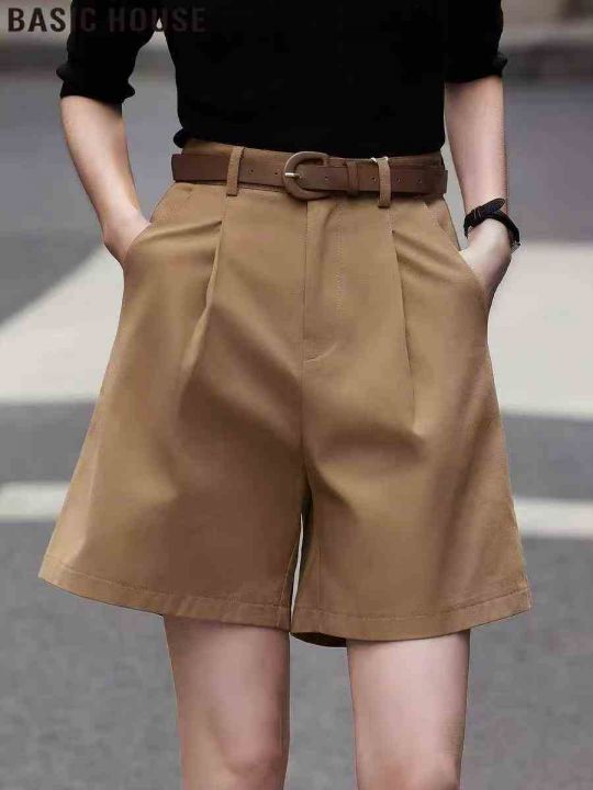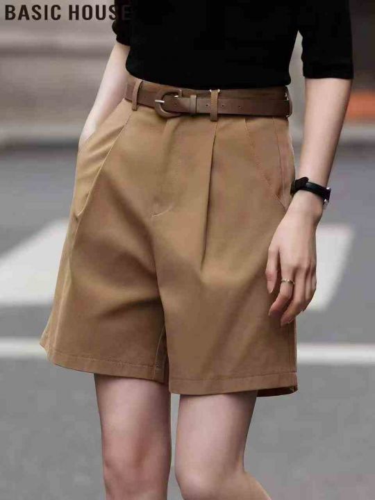 3.9清177件复咖色纯棉高腰西装短裤女款夏季三分阔腿裤...