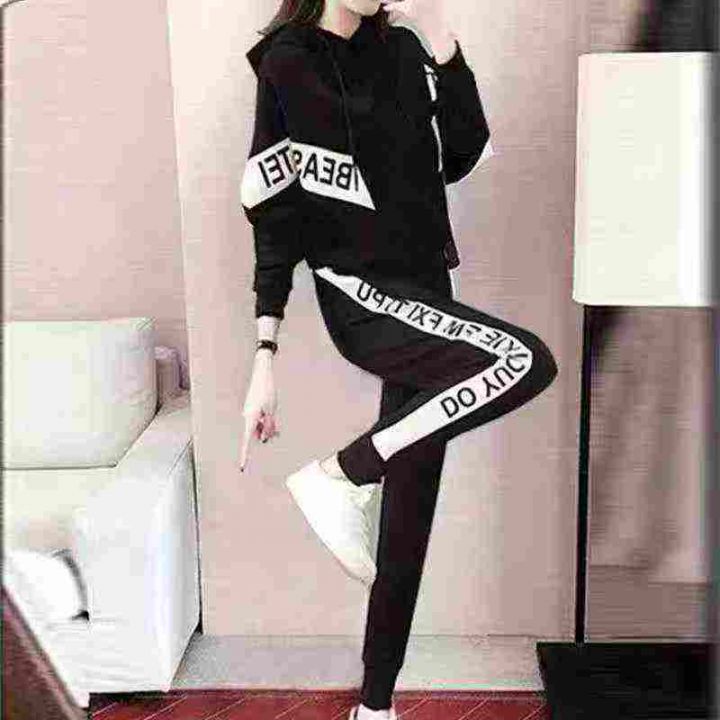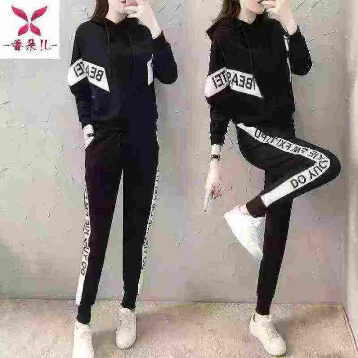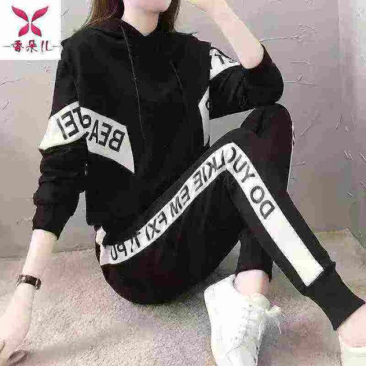 新款减龄大码韩版欧洲站春秋季休闲运动套装女洋气长袖卫衣两件套,单款单色,S.3XL码,100套左右,7.8清