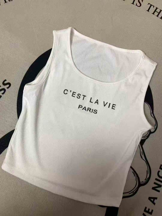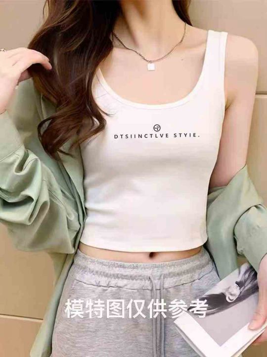 4.8清340件靓妹辣妹无袖字母印花白色吊带打底背心女遮副乳小个子修身百搭短款上衣 码数S-XL 独立包装