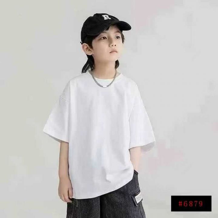 ️7576件\'夏季新款中大童韩版纯色凉感半袖体恤儿童上衣,20件一包装,黑白...