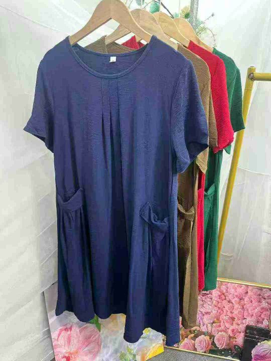 麻棉胖妈妈夏季短袖连衣裙遮肚裙中老年女加肥裙子,,1到5码,整款4色,1380件左右,独立包装,货品干净,6.8清分货加1