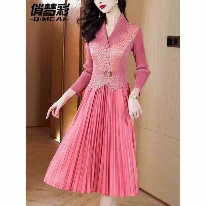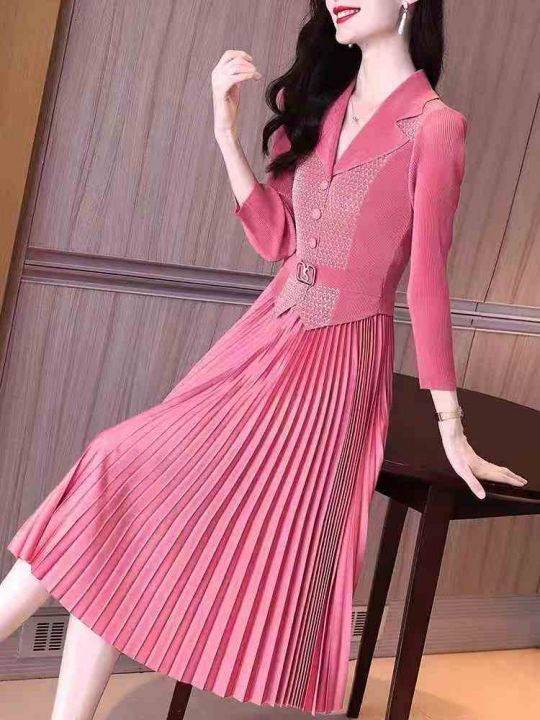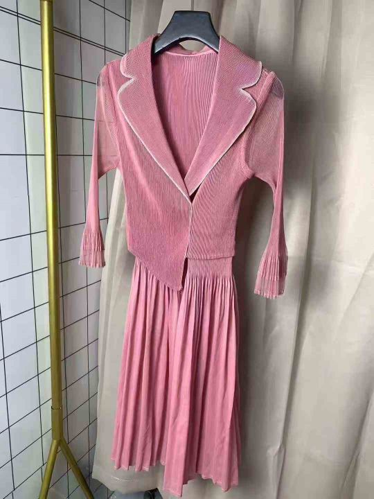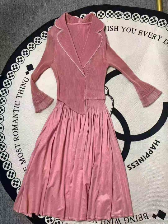 11.8清13件褶皱新款西装领灯笼袖百褶裙收腰显瘦魔术裙压褶连衣裙 码数均码