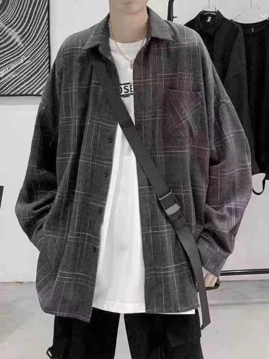 全清5.8分货+1格子长袖衬衫男士春秋季新款潮牌时尚宽松休闲衬衣外套 独立包...