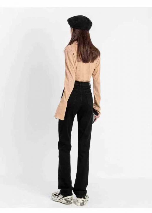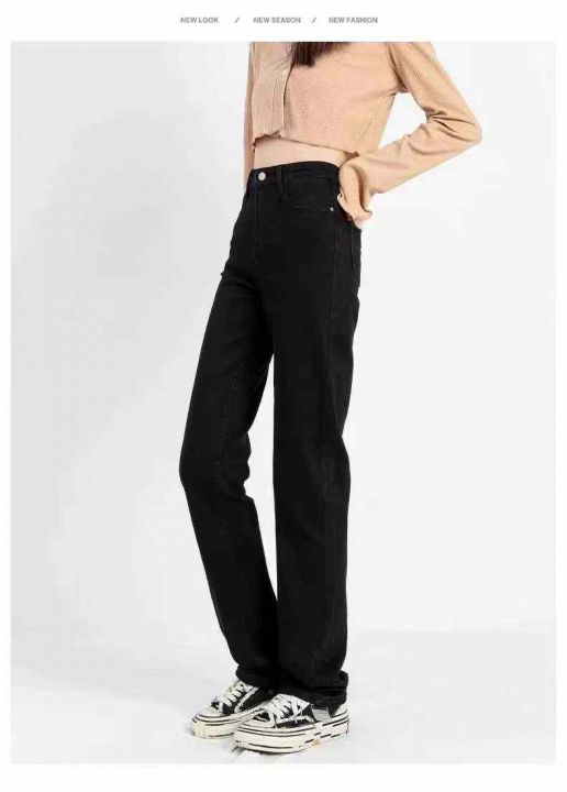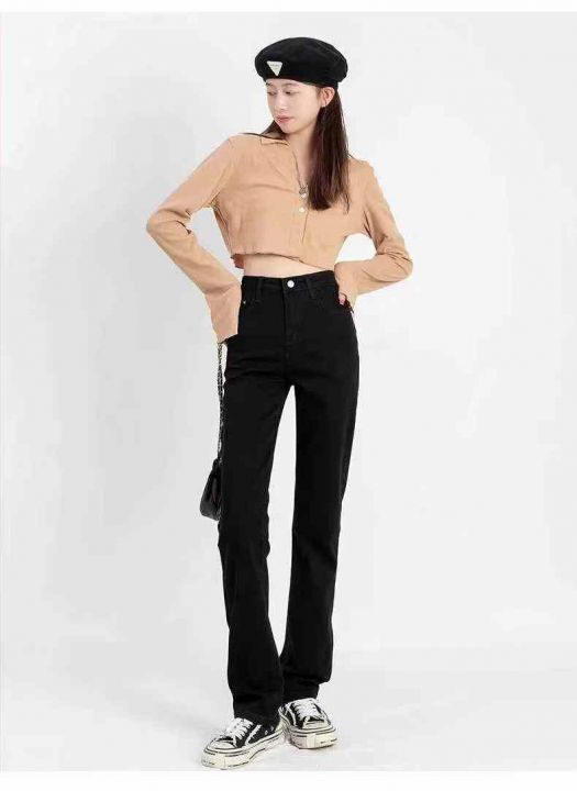 ☕️高弹力黑色窄版阔腿牛仔裤女新款高腰宽松高个子加...