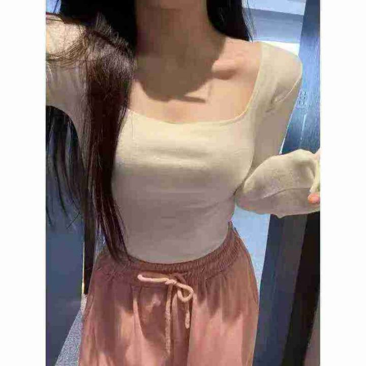 一字肩纯欲小众露肩修身显瘦内搭打底衫百搭褶皱长袖针织衫,120件,清6.5...