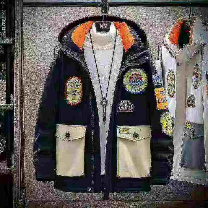 780件潮牌加厚连帽男女同款工装羽绒服,尺码M-XL, M码...