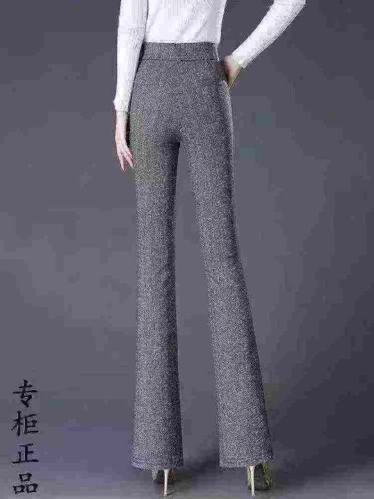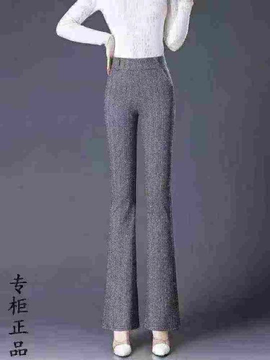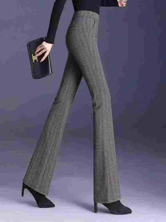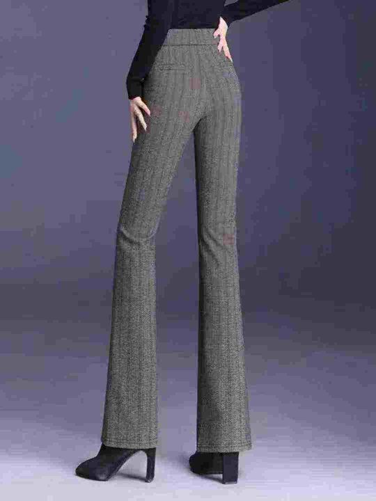 ️全清6.9 秋冬加绒女装条纹长裤,高腰显瘦喇叭裤,...