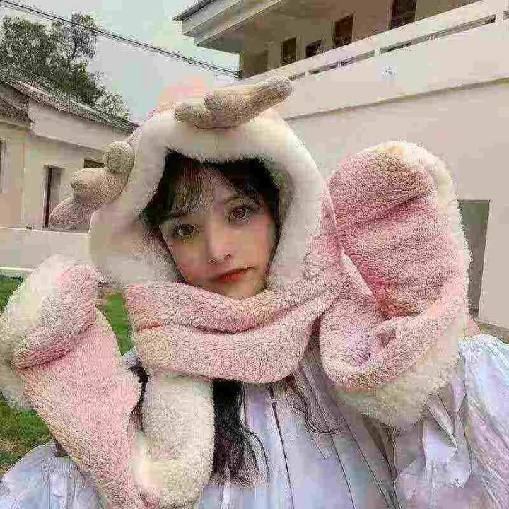 1412 件左右[红包] 秋冬爆款保暖神器,毛绒帽子围巾手套围脖三件套一体,可...