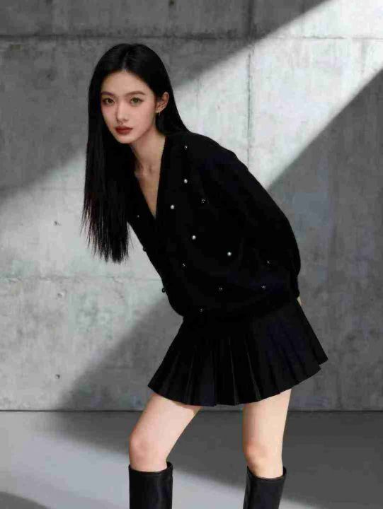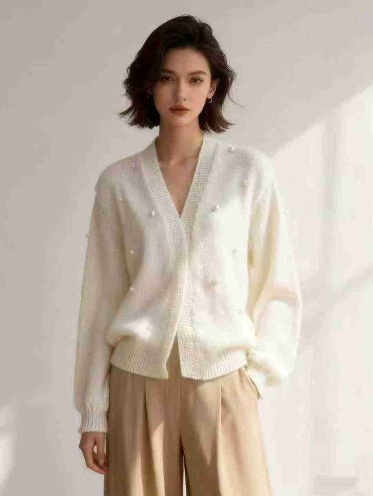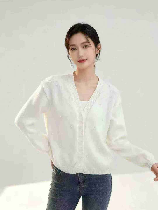 秋冬款ins简约百搭订珠针织毛衣开衫外套,独立包装,...