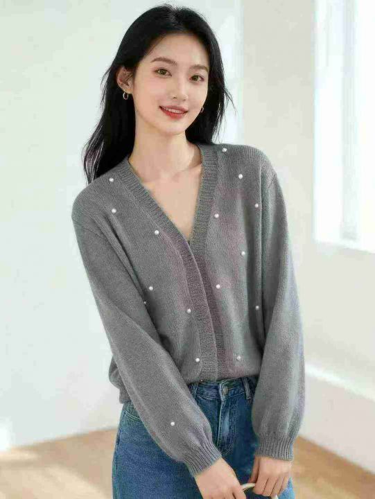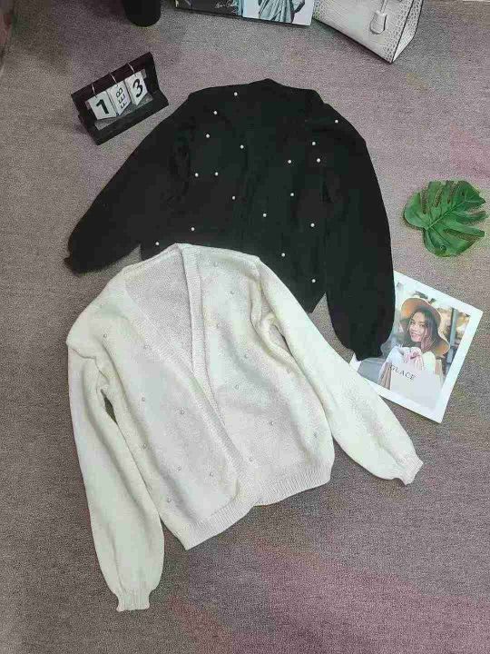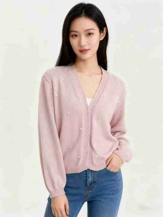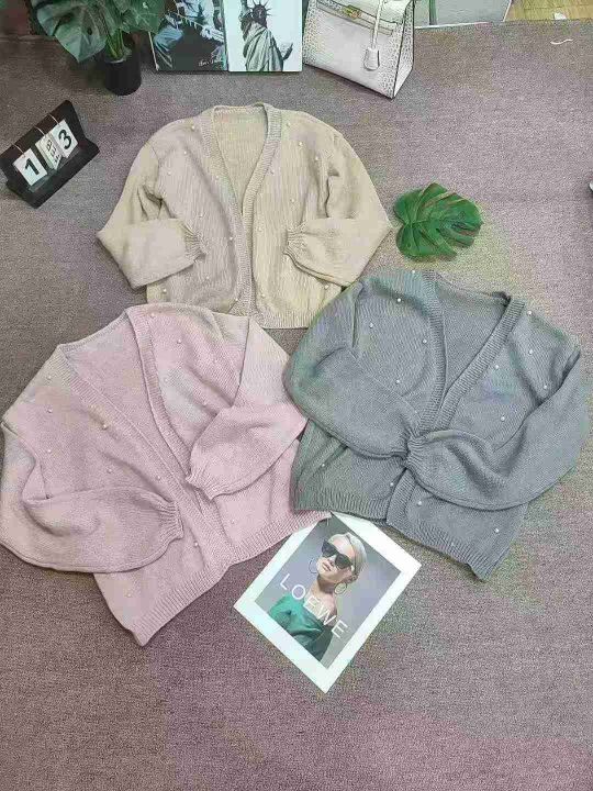 秋冬款ins简约百搭订珠针织毛衣开衫外套,独立包装,均码,190件,清8.5元