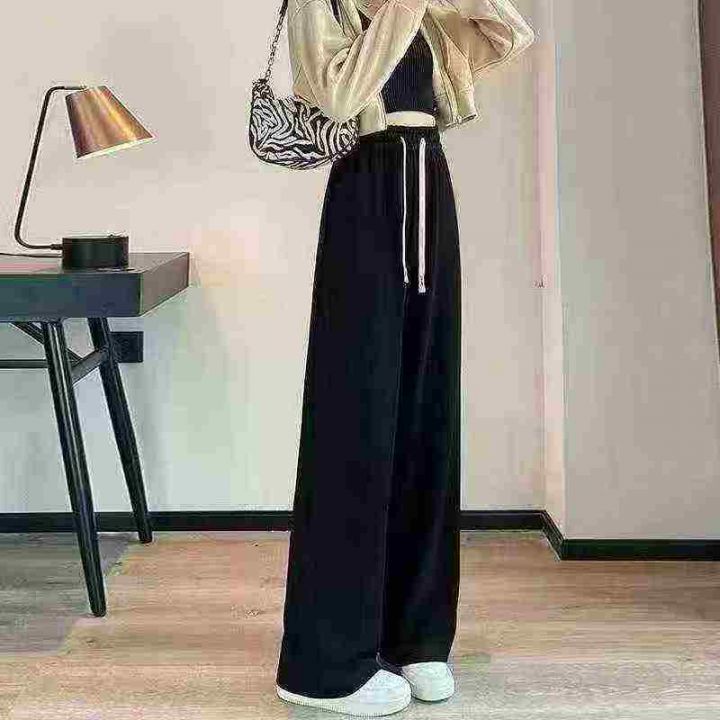 韩版简约春秋款女士雪尼尔灯芯绒垂感阔腿抽绳休闲直筒裤.图片款两种面料M-...