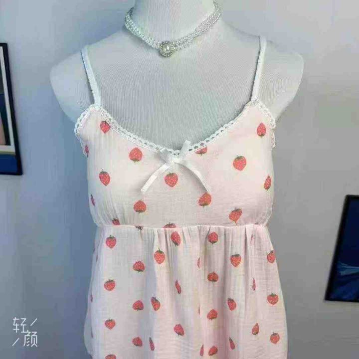 吊带睡衣纯棉带胸垫甜美可爱公主风,纯棉吊带套装,面料纯棉舒服柔软透气,自带胸罩,带子可调节,新货零瑕疵,码数齐全M L XL ,独立包装,原吊牌原包装,全部纸板拉链包装,85套左右,全清12.8