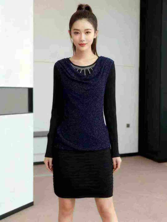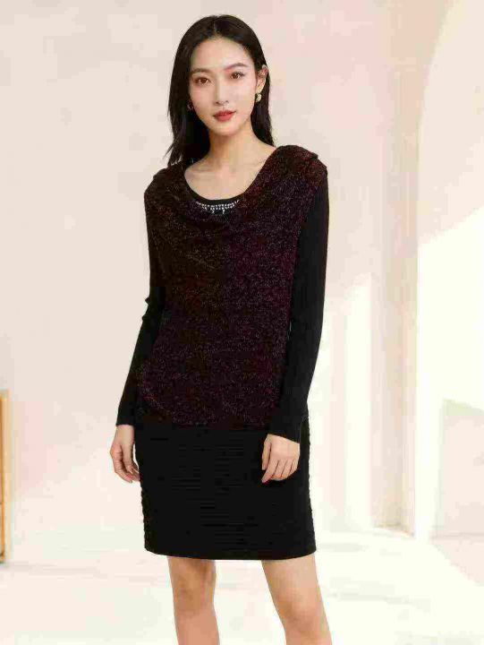 时尚堆堆领百搭设计感套头钉珠针织连衣裙,独立包装,...