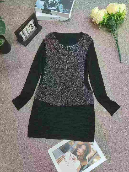 时尚堆堆领百搭设计感套头钉珠针织连衣裙,独立包装,均码,470件,清7.5,分➕1