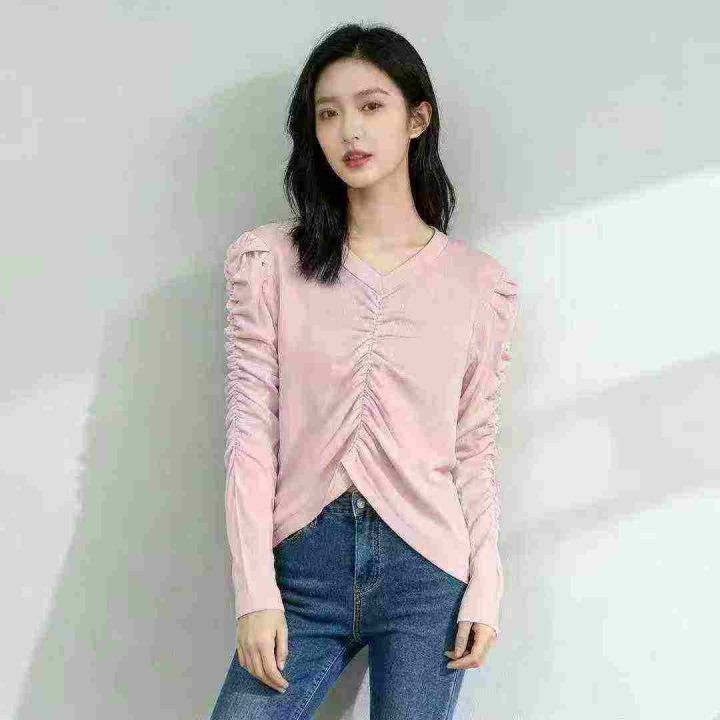 新款套头褶皱修身收腰显瘦针织上衣,独立包装,均码,...