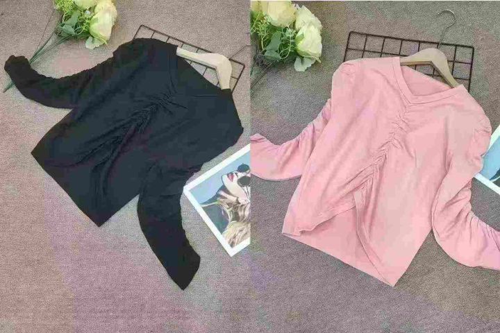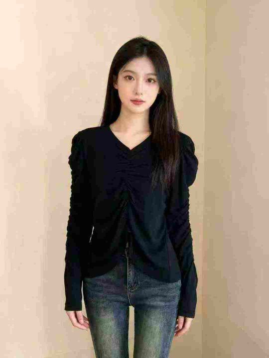 新款套头褶皱修身收腰显瘦针织上衣,独立包装,均码,380件,清6.5,分➕1