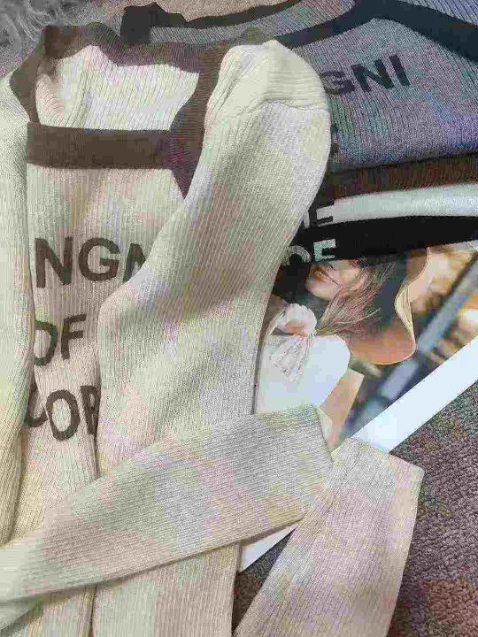 美式时髦拼色假两件方领长袖早秋新款字母修身显瘦针织上衣,品质很好,独立包装,均码,400件,清6.5,分➕1