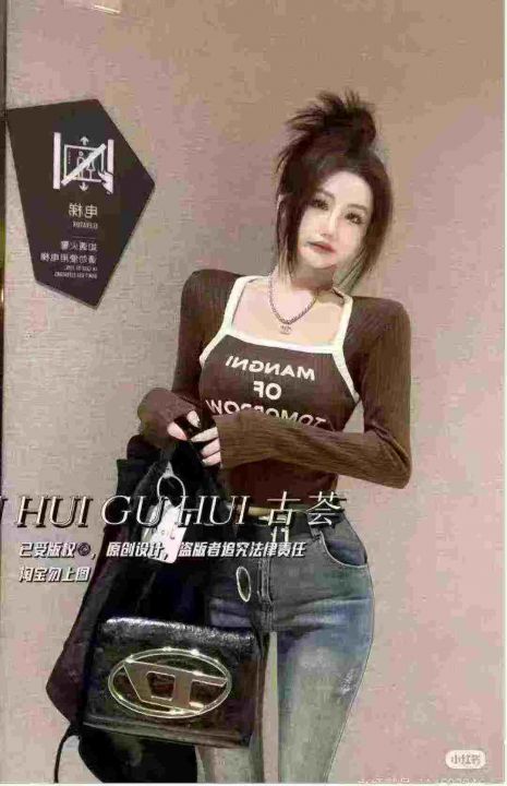 美式时髦拼色假两件方领长袖早秋新款字母修身显瘦针织上衣,品质很好,独立包装,均码,400件,清6.5,分➕1