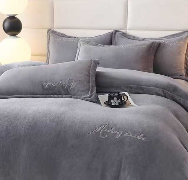 牛奶绒绣花四件套,四个颜色