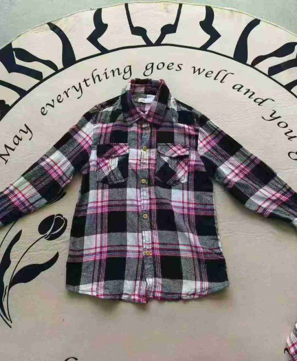 童装纯棉格子春秋长袖衬衣 数量350件左右 尺码6Y--12Y 带帽跟无口袋少量 其余都是图6带口袋 纽扣三个颜色 独立包装 货品干净整洁质佳