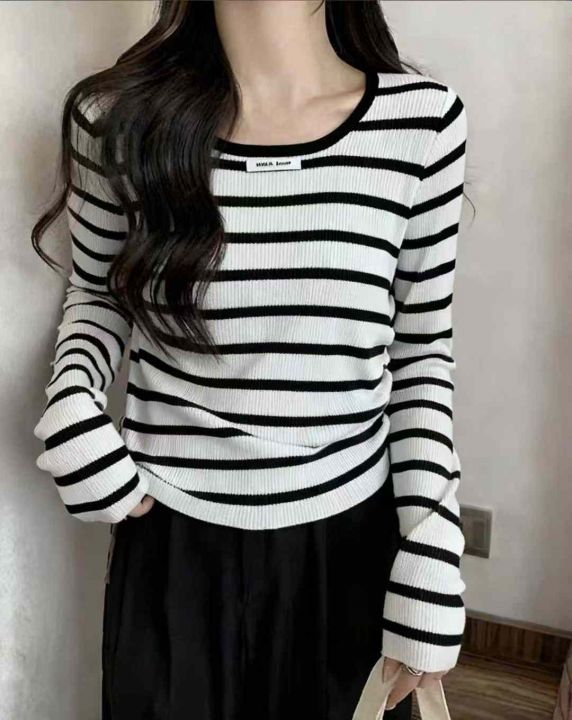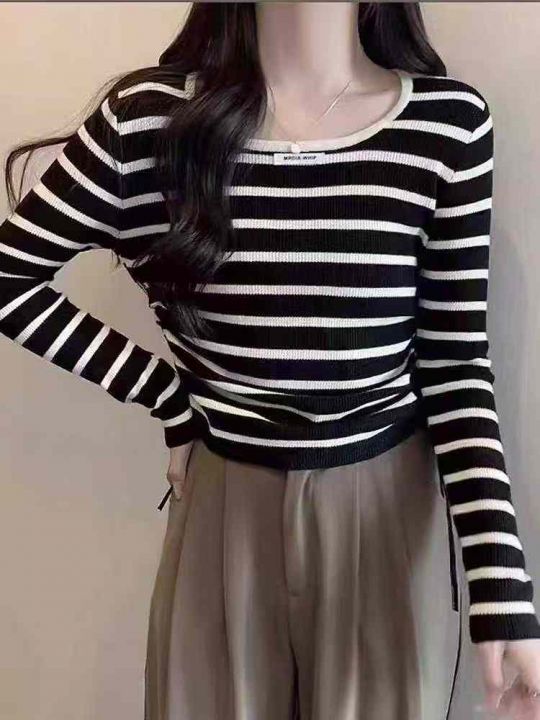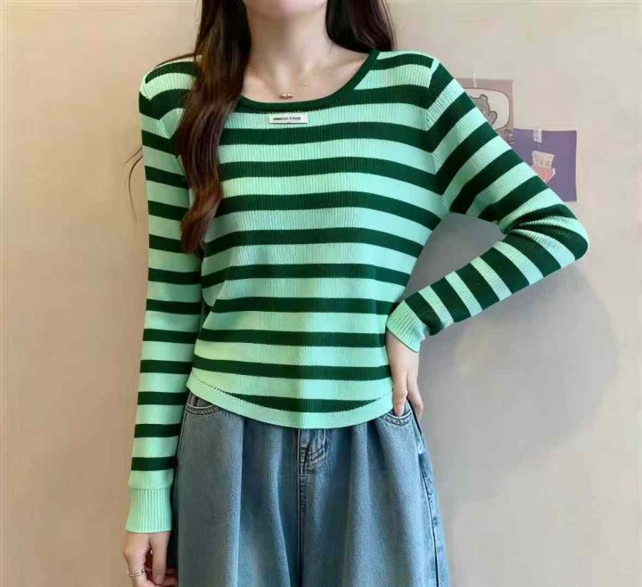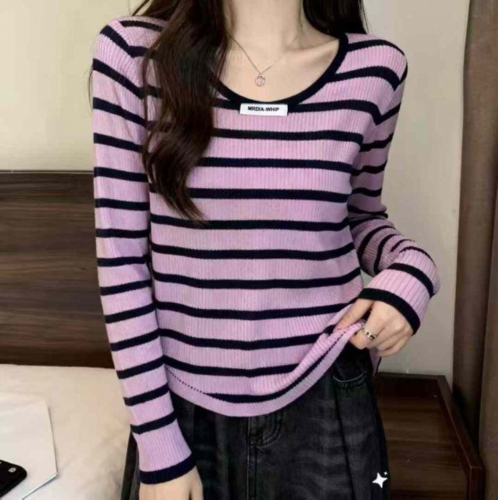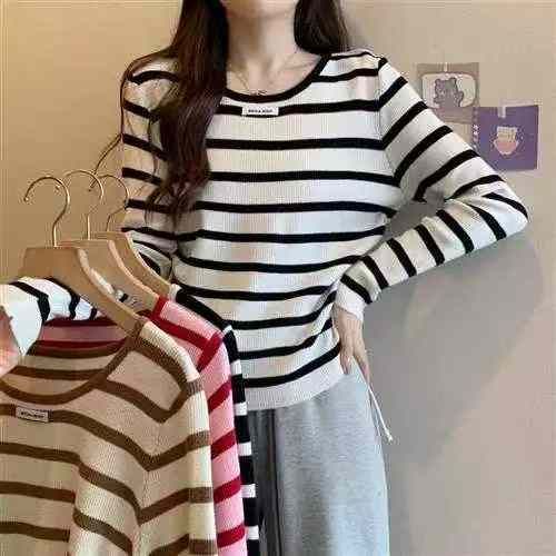 秋冬季新款撞色条纹宽松百搭包芯纱套头毛衣,独立包装...