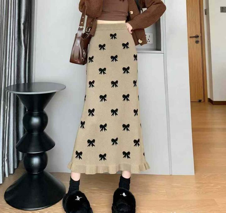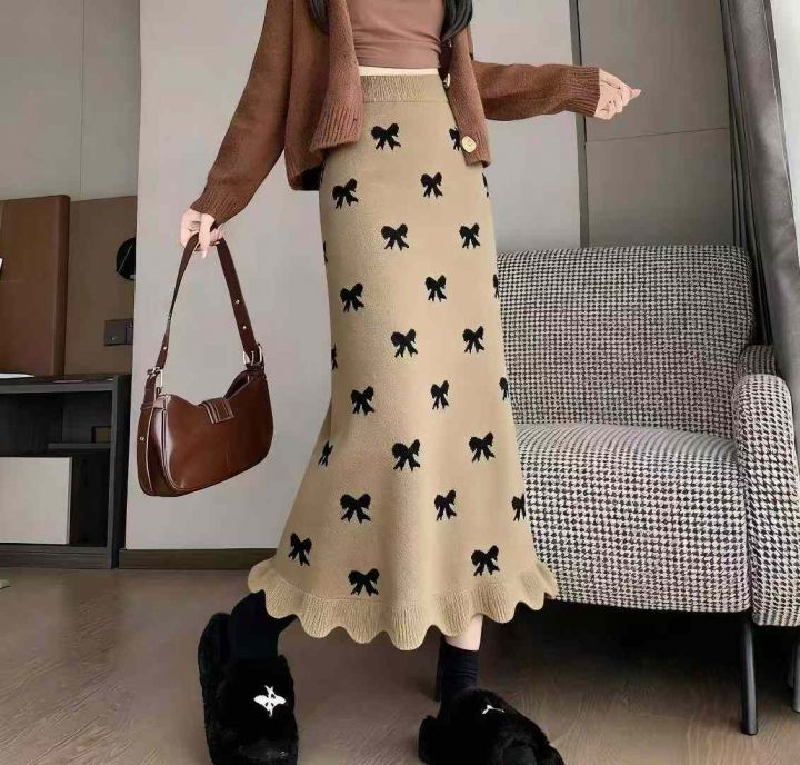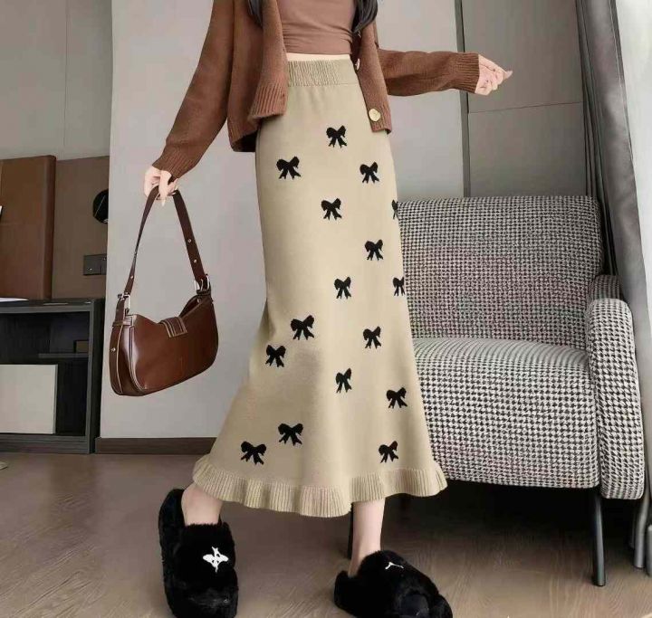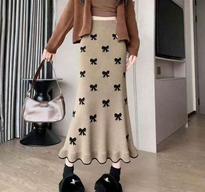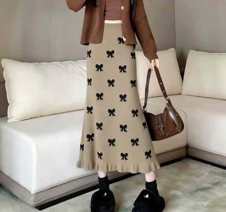 秋冬新款温柔荷叶边软糯甜美高腰显瘦垂感针织毛衣半身...