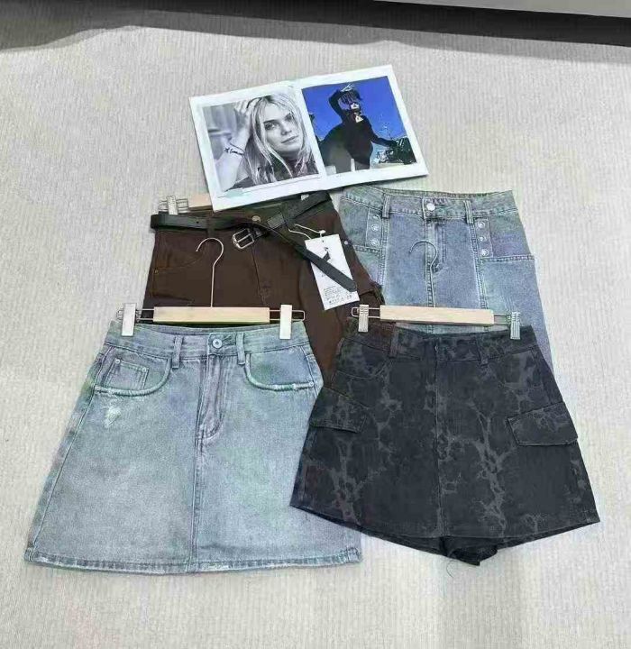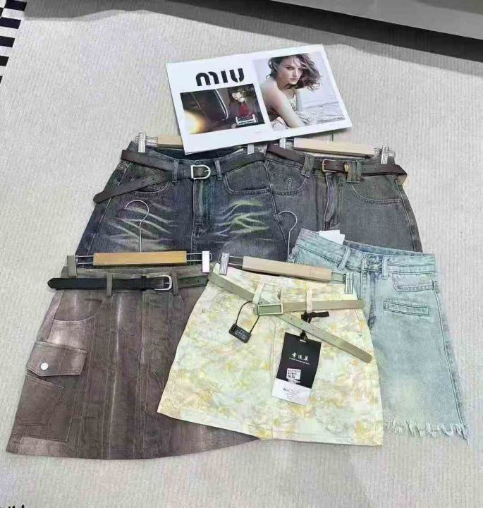 杭州品牌复古工装牛仔短裙裤夏季新款小众设计感女装短款辣妹高腰显瘦做旧A字裤裙,带内衬,S-XL码,400件左右,高货独立包装带吊牌大多附送腰带,品质绝绝子,全清8.8,分货➕1元