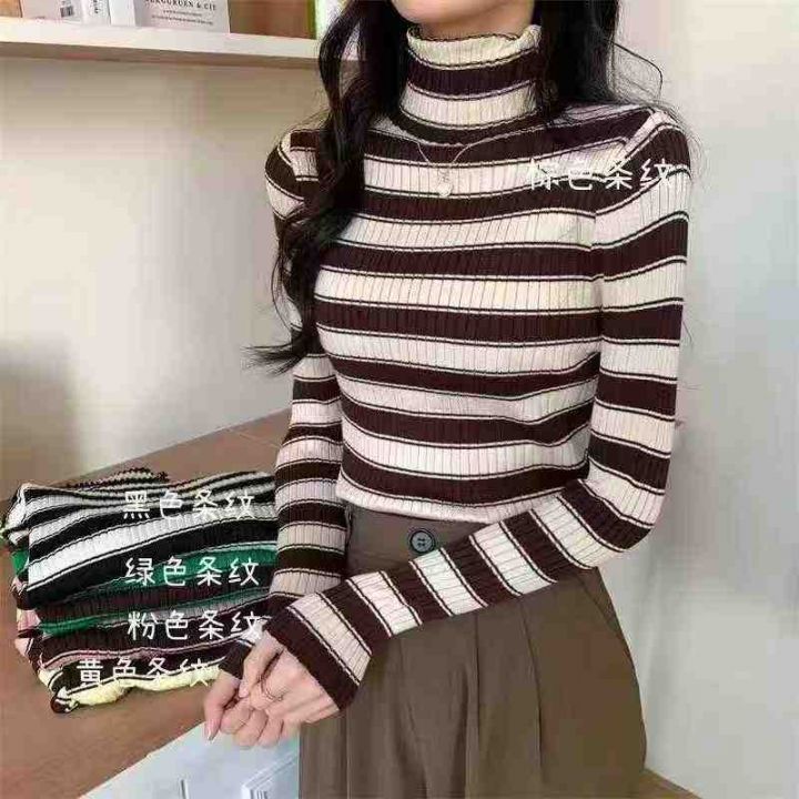 冬季新款堆堆领撞色条纹针织套头毛衣,独立包装,均码面料软糯厚实弹力大,160件,全清7.9元超低价秒杀!