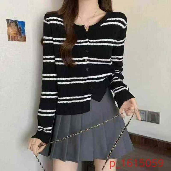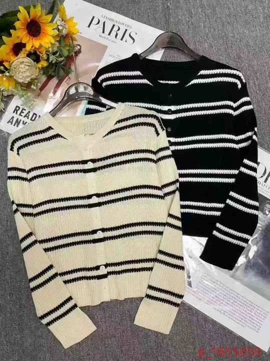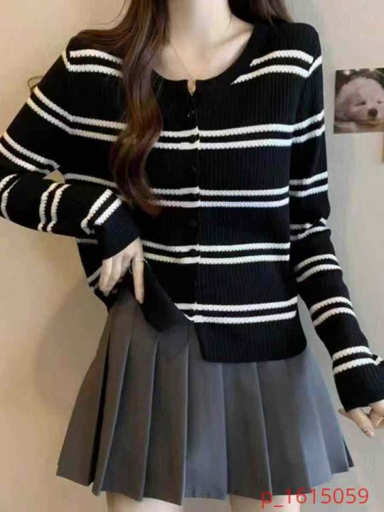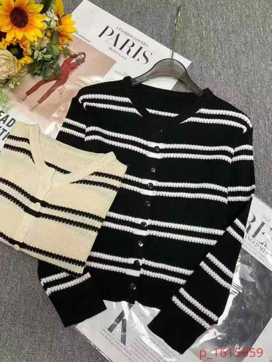 秋季新品宽松韩版别致休闲V领撞色条纹长袖针织开衫,独立包装,黑色条纹为主,均码面料软糯舒适弹力大,60件左右,全清7.9元超低价秒杀! _@_@