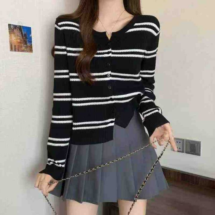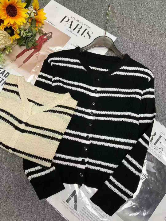 秋季新品宽松韩版别致休闲V领撞色条纹长袖针织开衫,独立包装,黑色条纹为主,均码面料软糯舒适弹力大,60件左右,全清7.9元超低价秒杀!