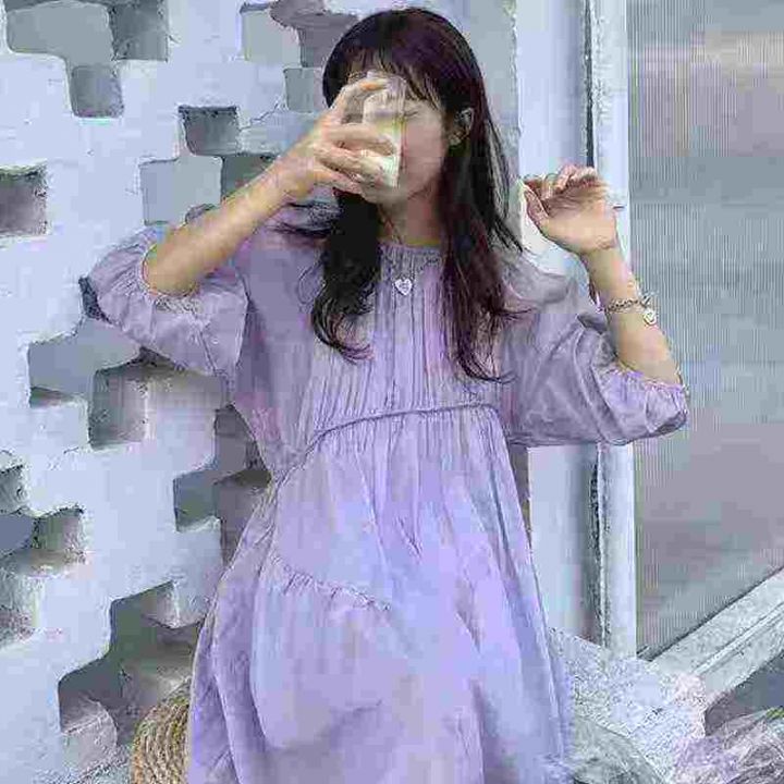 韩版宽松大版型不规则设计感温柔显白泡泡袖吊带两件套长款连衣裙,[爱心]360套左右,S胸围114,码数S-XL,穿80-160斤,万佳档口货,原包装️无瑕疵,[666]实体店品质,分货加一