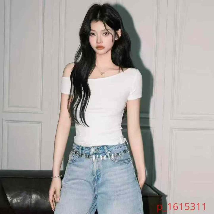 2.5清电商仓回收1166件纯欲性感斜肩短袖上衣,码数S-2...