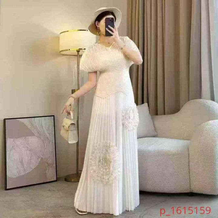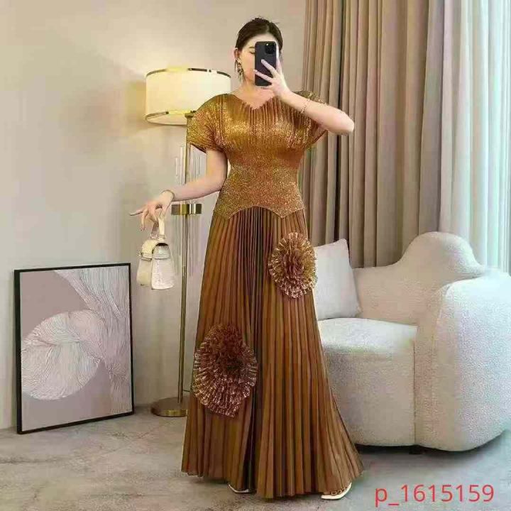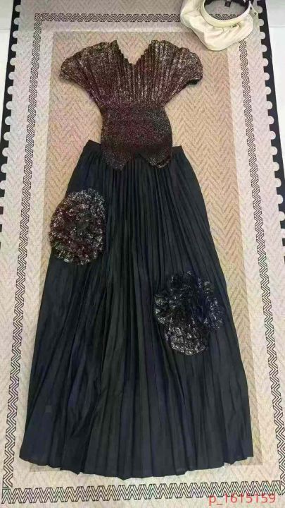 100套左右三宅轻奢重工烫金大盘花长半裙褶皱两件套收...