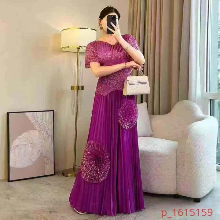100套左右三宅轻奢重工烫金大盘花长半裙褶皱两件套收腰短袖蝙蝠衫两件套!均码,高弹力!做高货的来!独立包装!全清48.8 分货50 _@_@
