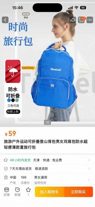 1000个旅游户外运动可折叠登山背包男女双肩包防水超轻便薄款夏旅行包,独立包装,货品干净,全清9.9