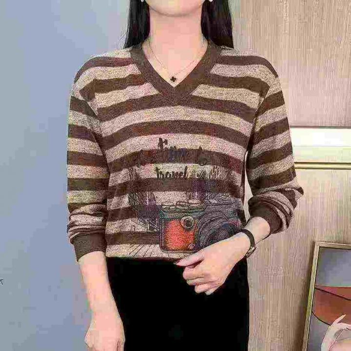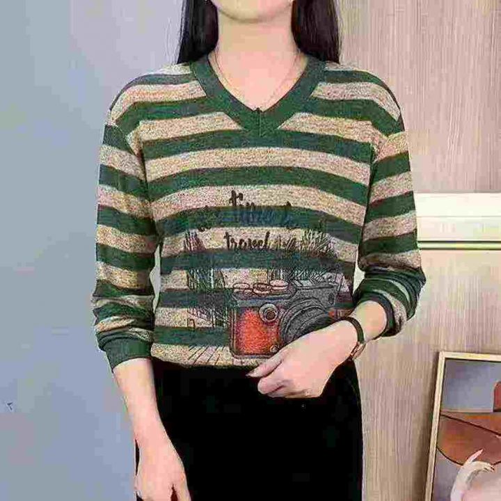 时尚设计感V领条纹印花宽松休闲长袖,[爱心]600件左右,码数M-5XL,穿80-160斤,万佳档口货,原包装️无瑕疵,[666]实体店品质,分货加一