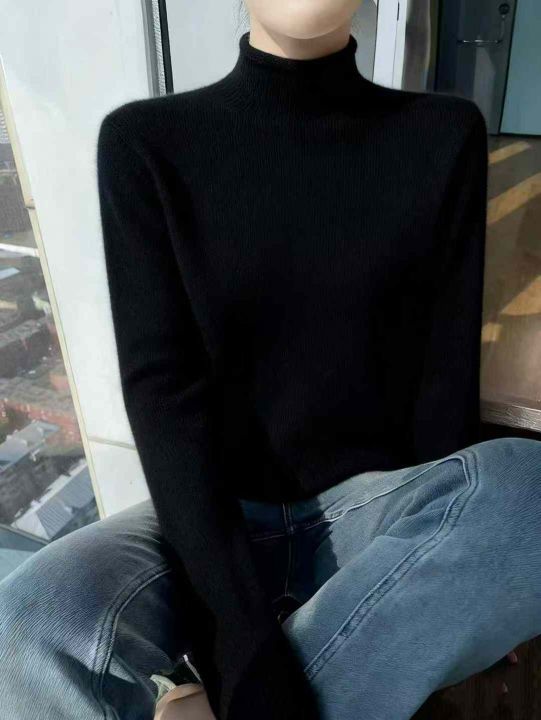 秋冬新款宽松百搭净版简约宽松2条毛包芯纱套头毛衣,...